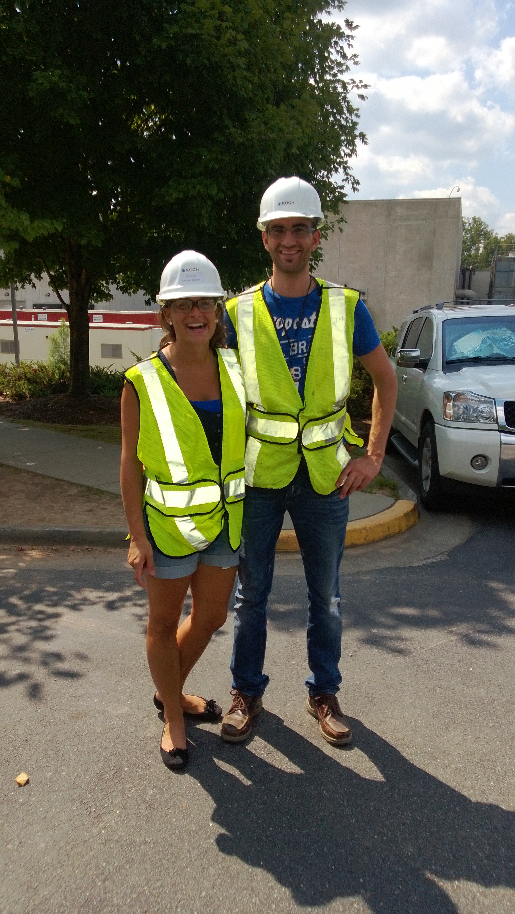 Weil die Amis voll arg streng mit ihren Sicherheitsvorschriften sind, müssen sie jeden Tag mit Schutzhelm und -brille arbeiten. Heute sind die letzten Kollegen aus Deutschland hier angekommen, insgesamt sind sie jetzt 10 Leute, dann kann es richtig losgehen.