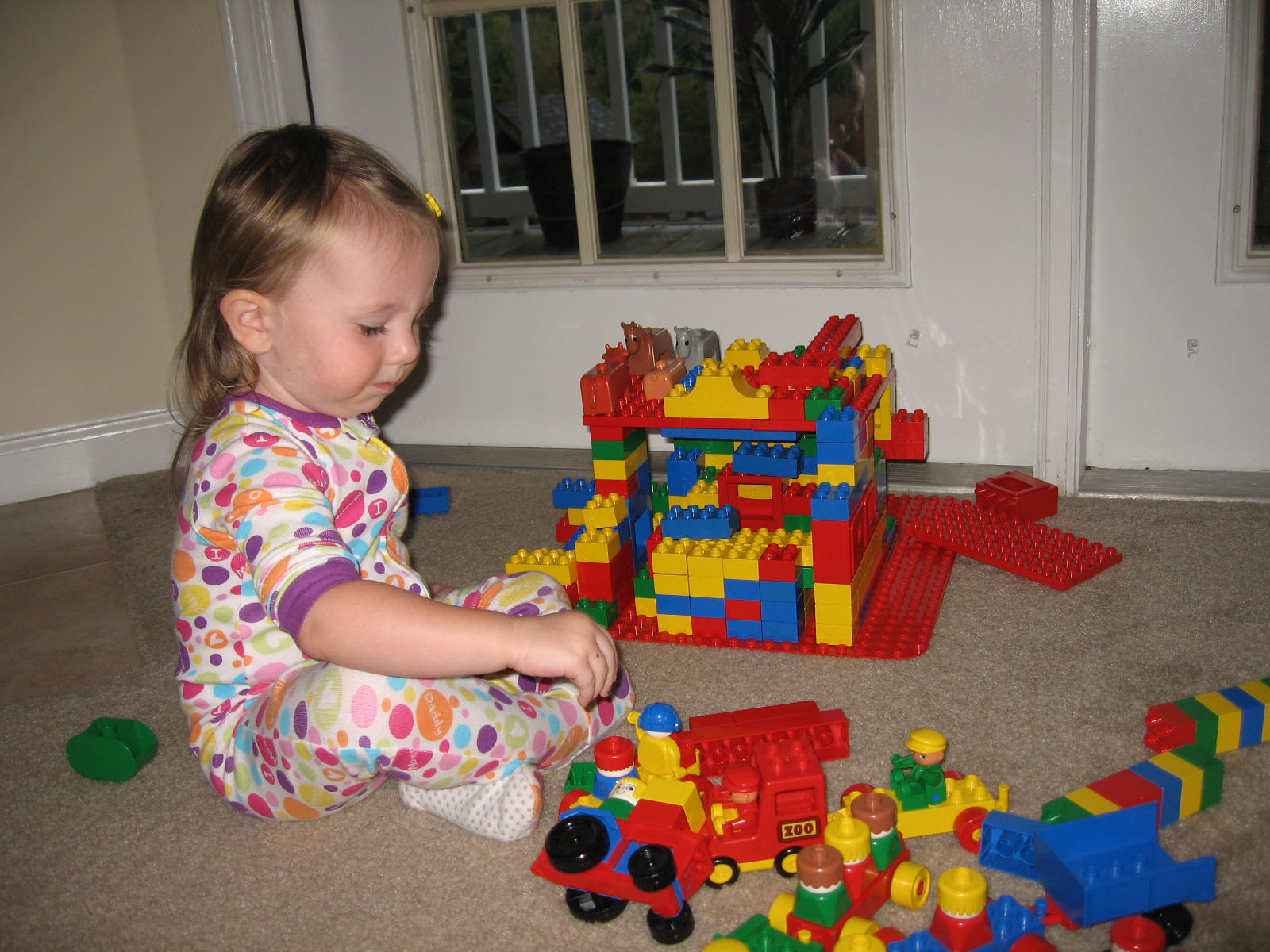 Mit Hingabe spielt sie grad oft mit ihren ausgeliehenen Duplosachen, entweder ganz vertieft alleine oder auch gern mit Anderen.