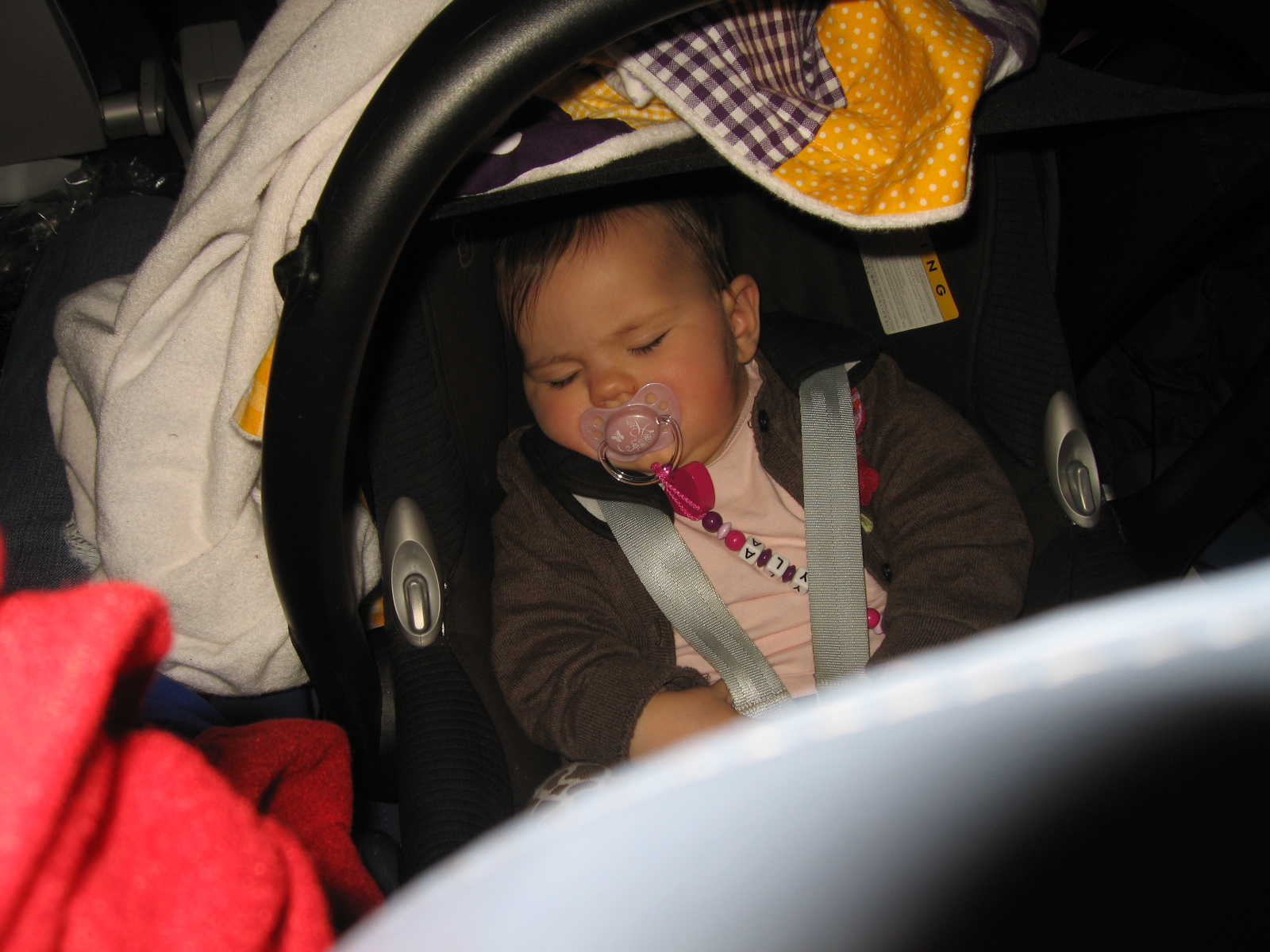 Für unsere Mädels war es schön und sehr anstrengend. Die Fliegerei haben sie super gemeistert. Beim Hinflug nach Deutschland hatte Magali und wir „Alten“ auch wenig Schlaf, aber das ist wohl normal und beim Rückflug nach Atlanta waren sie total tapfer. Magali dank dem Disneyfilm „Susi und Strolch“, der in Dauerschleife bei ihr lief und Kayla auch dank der vielen Monitore um uns rum, wo sie mit Begeisterung reinstarrt. Egal wie ich sie gehoben habe, irgendwo war immer ein Film, den sie sich anschauen konnteJ Ein Mann meinte zum Schluss:“A good baby to fly with“, weil sie echt kein Mal irgendwie laut geschrien hat, aber auch wegen unserem guten Freund, dem Schnulli 🙂
