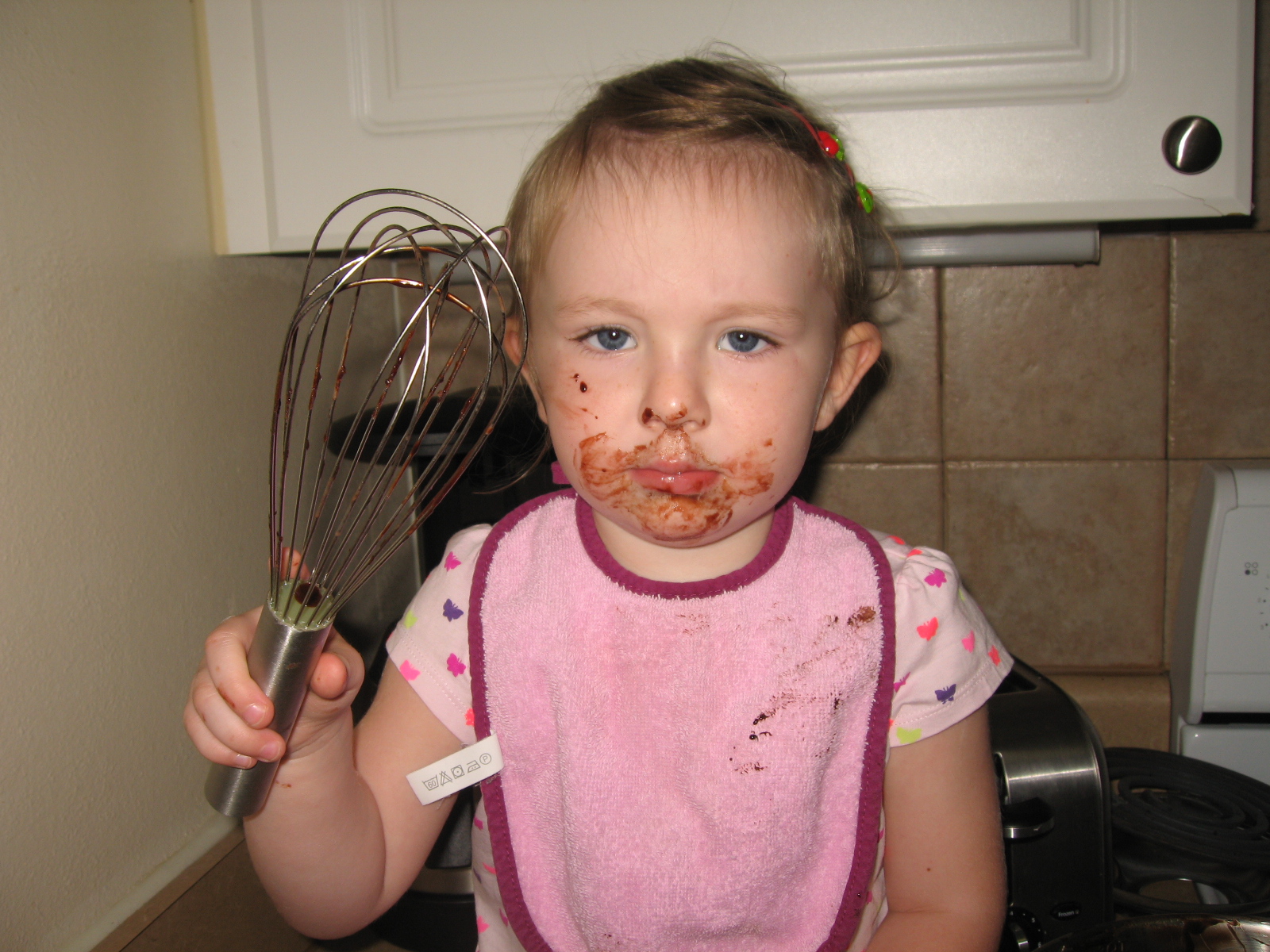 Magali isst was Neues. Kommentar: Ein bisschen schmeckts lecker und ein bisschen eklig.