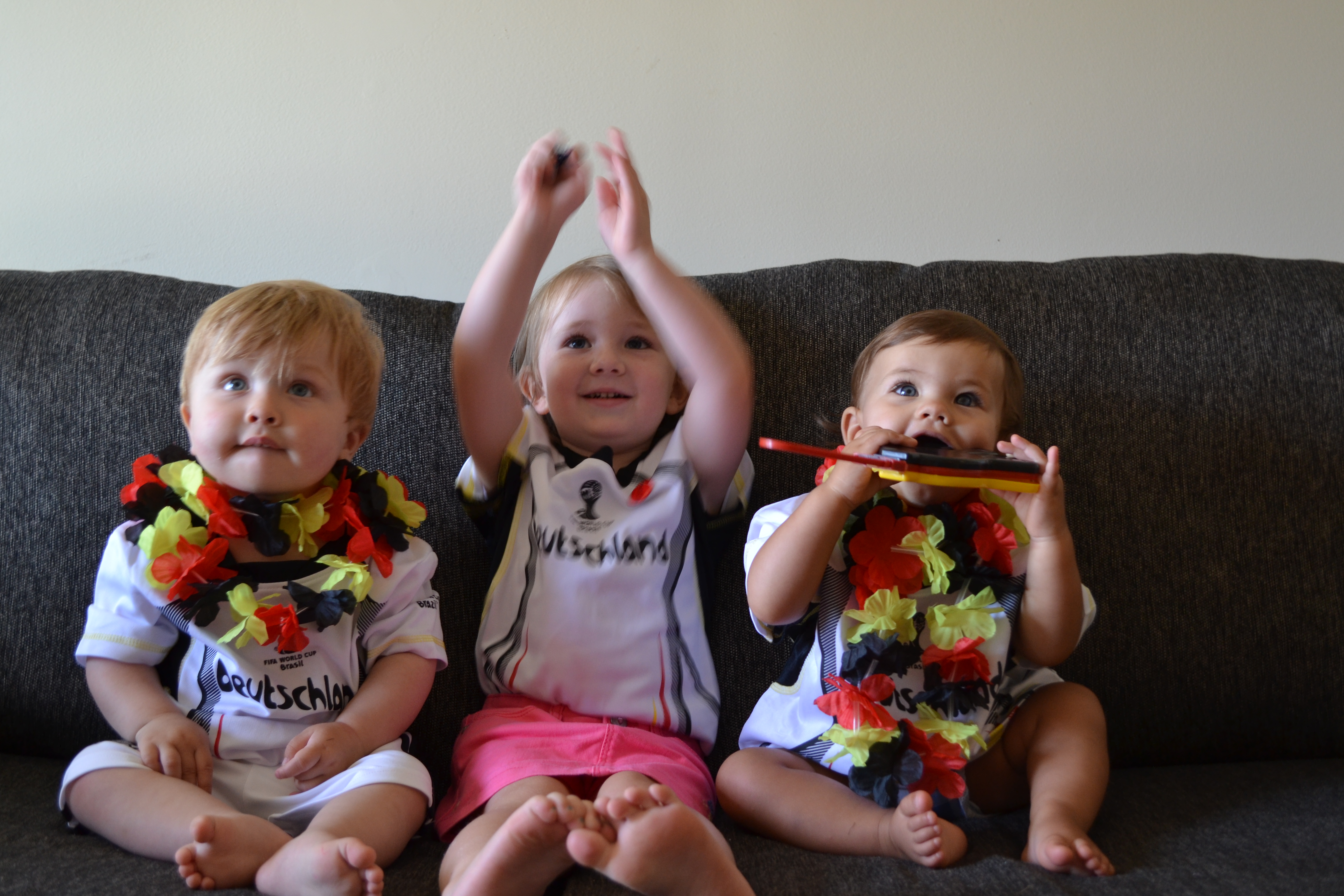 Sonst beschäftigt die beiden Männer die WM enorm. Da wir kein TV haben und das mit dem Internet bisher nicht geklappt hat, findet man sie ins Handy mit dem Liveticker starren oder am Father´s Day in der Sportsbar. Zum Deutschlandspiel hat Andi mit Kollegen eine Mittagspause in der Sportsbar eingelegt und wir haben uns dreisterweise bei Freunden selber zum Fussball schauen eingeladen:) Aber immerhin haben wir Pizza und Trauben mitgebracht.