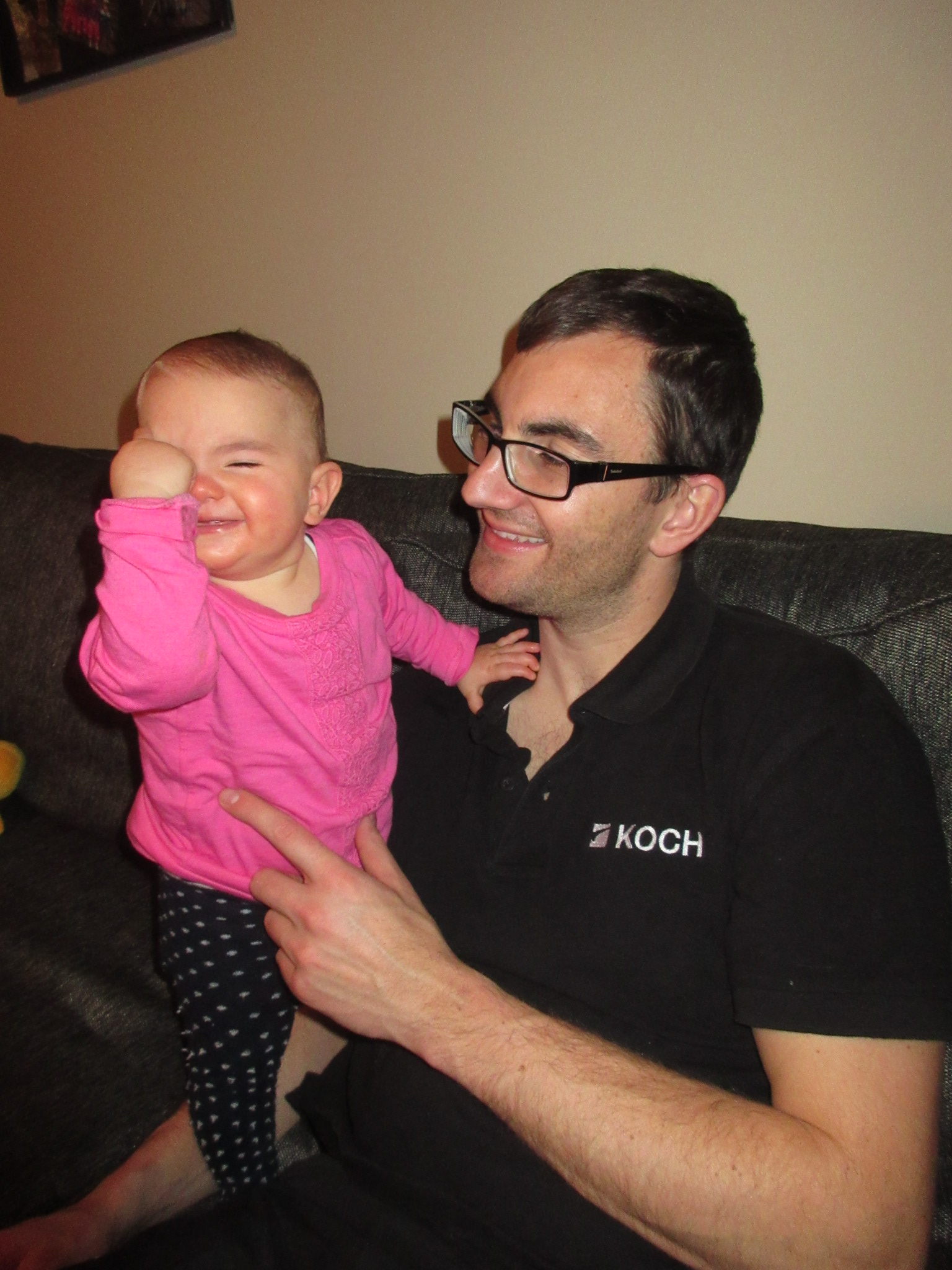 Carlotta kann jetzt super alleine aus ihrer Trinksuckelflasche trinken. Sie ist voll der Sonnenschein. „Happy Baby“ sagte vor kurzem jemand zu ihr. Wenn sie lächelt, dann richtig. Wenn ihr was nicht passt, dann richtig. Sie brabbelt wie ein Weltmeister „mamama“ „bababa“. Mit ihrem Papa ist sie jetzt so richtig warm geworden. Der hatte immer gesagt, dass er jetzt irgendwie mit so ganz kleinen Babys nicht so gut was anfangen kann und sie auch sehr auf mich fixiert war. Ist ja auch so, dass so ca. das erste Jahr einfach die Mami Luft und Leben ist, kennen die Babys ja schon vom Jahr davor:) Jetzt hat sich das geändert und sie freut sich mega, wenn ihr Daddy heimkommt und krabbelt gleich zu ihm hin. Das freut Andi sehr .