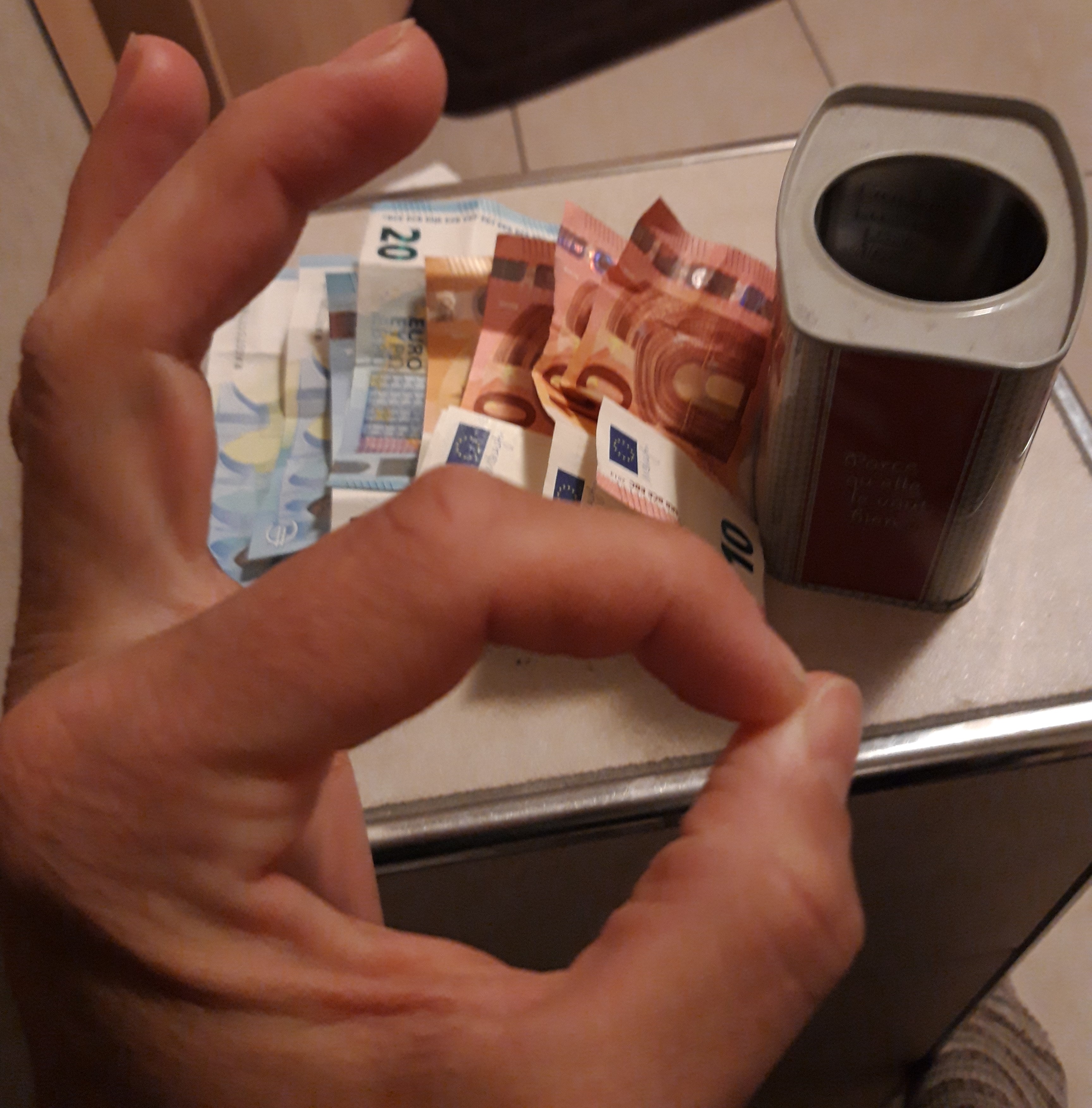 Staunend…über so viel Verdienst in meiner Haarschneidekasse! (in die nur Andi einbezahlt:))