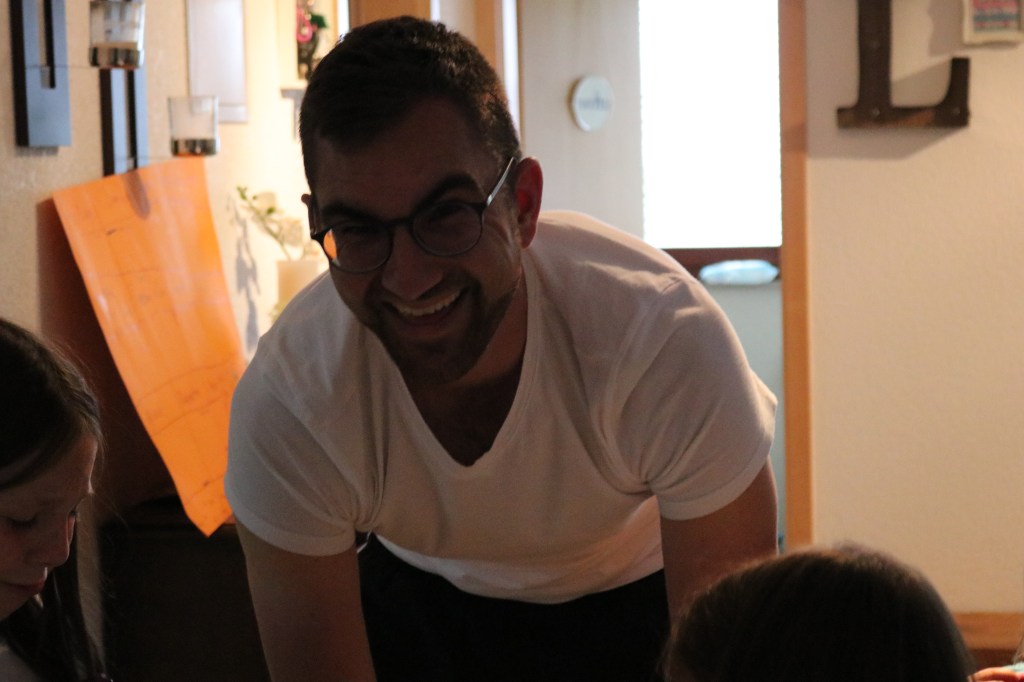 Beim gemeinsamen Abendmahl am Esstisch: „Christi Blut für dich gegossen.“