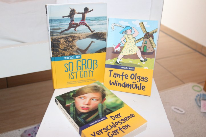 Bücher vom Bibellesebund, z.B. Tante Olgas Windmühle, : eher so ab 8, 9, 10 Jahren. Ganz viele Klassiker, so dünne, gelbe Büchle. Geschichten mit richtig gutem Tiefgang und Inhalt. Wir lesen sie in Abschnitten vor…