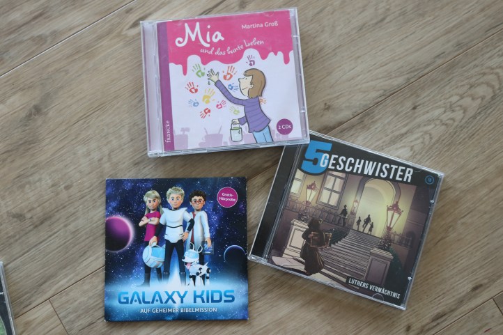 Ich schaue regelmäßig beim Buchhandel meines Vertrauens und auch online nach, was es so neues an guten Medien für Kinder gibt. Das finde ich echt wichtig, weil ich möchte, dass sie so viel Gutes und Wahrheit in ihren Gedanken und Köpfen tragen, wie möglich. Ich schenke den Kids zu Weihnachten oder zum Geburtstag öfters neue Musik oder Bücher, „die sie sich überhaupt nicht gewünscht haben!!!“ 🙂 Nach einer Weile sind sie dann meist aber doch froh & zufrieden! (Wow!:))